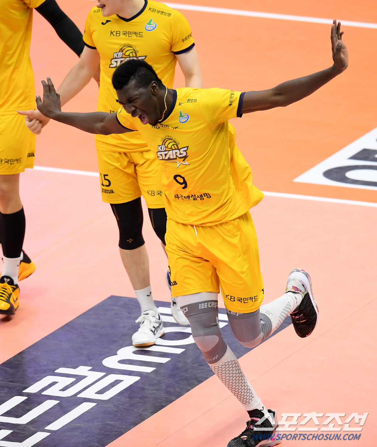 프로배구 남자부 KB손해보험과 우리카드의 경기가 30일 의정부체육관에서 열렸다. KB손해보험 케이타가 블로킹을 성공하고 환호하고 있다. 의정부=허상욱 기자 wook@sportschosun.com