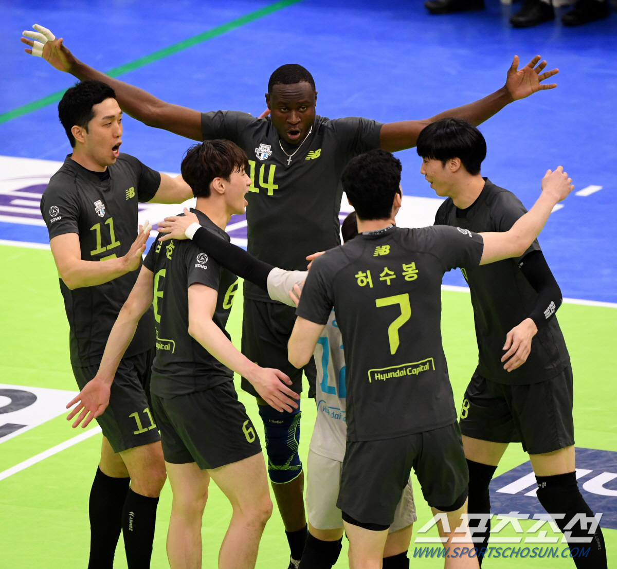 현대캐피탈은 62.85%의 높은 공격성공률을 자랑했다. 다우디(18득점)와 허수봉(15득점), 김선호(10득점) 등 공격수들과 세터 김명관의 호흡이 빛났다.