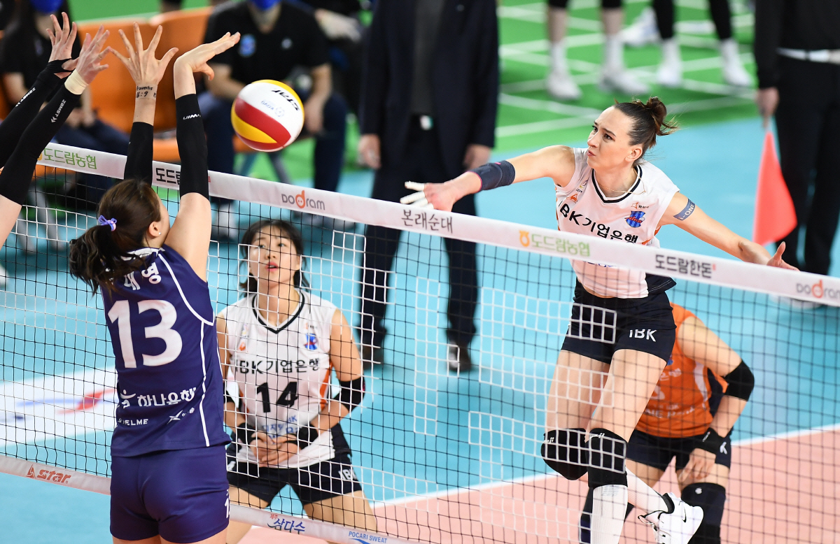 27일 도로공사 전도 마찬가지였다. 사실상의 3위 결정전이었던 이날, 양 팀은 상반된 전략을 들고 나왔다. 김우재 기업은행 감독은 초반부터 라자레바에게 공격을 집중시켜 빠르게 끝내는 쪽을 택했다. 반면 김종민 도로공사 감독은 공격 부담을 분산시키며 길게 보는 전략을 펼쳤다.