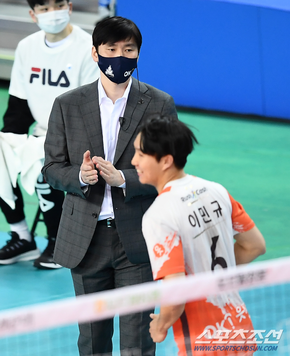 OK금융그룹 석진욱 감독은 "선수들에게 상대 멤버 빼는 거 기대하지 말고 우리가 해서 이겨야 한다. 우리가 이기려는 의지를 보여주자고 했다"라고 말했다.