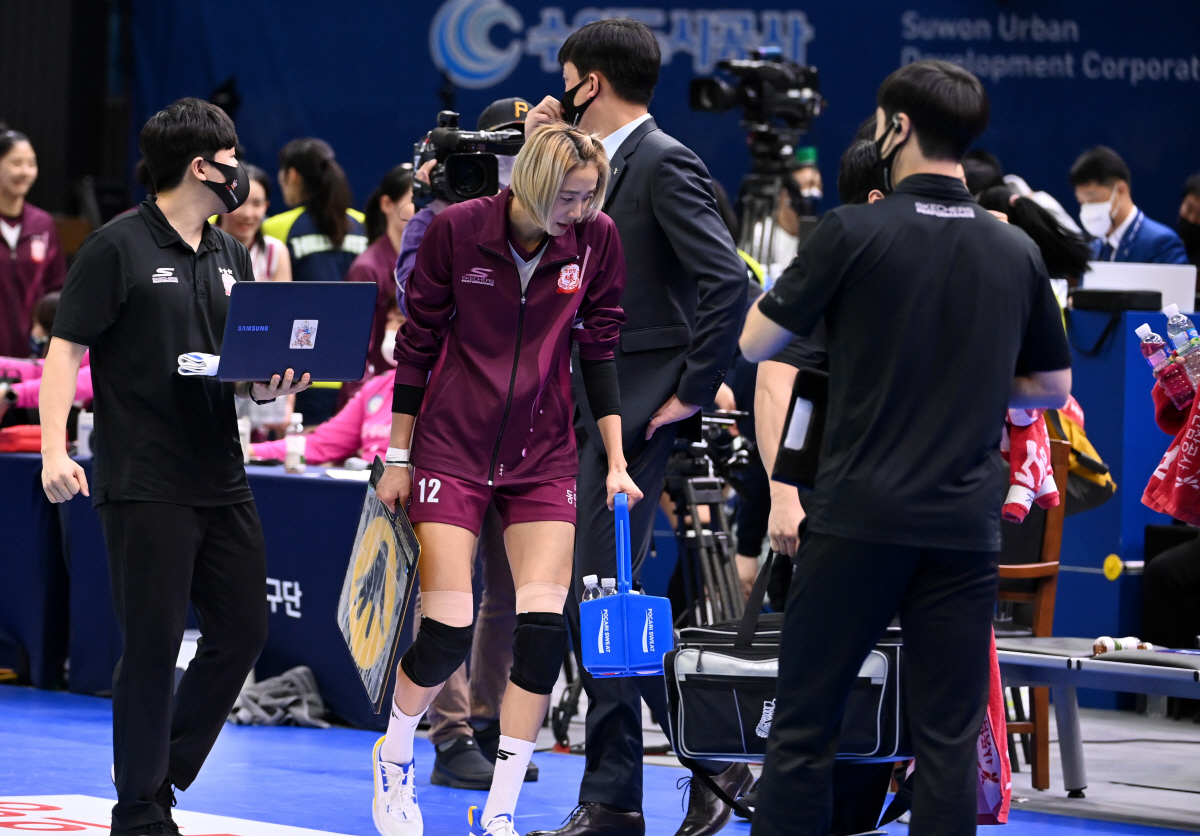[수원=스포츠조선 허상욱 기자] 팀을 이끄는 주장이자 맏언니 한송이가 패배에 아쉬워하는 후배들을 다독이며 위로했다.