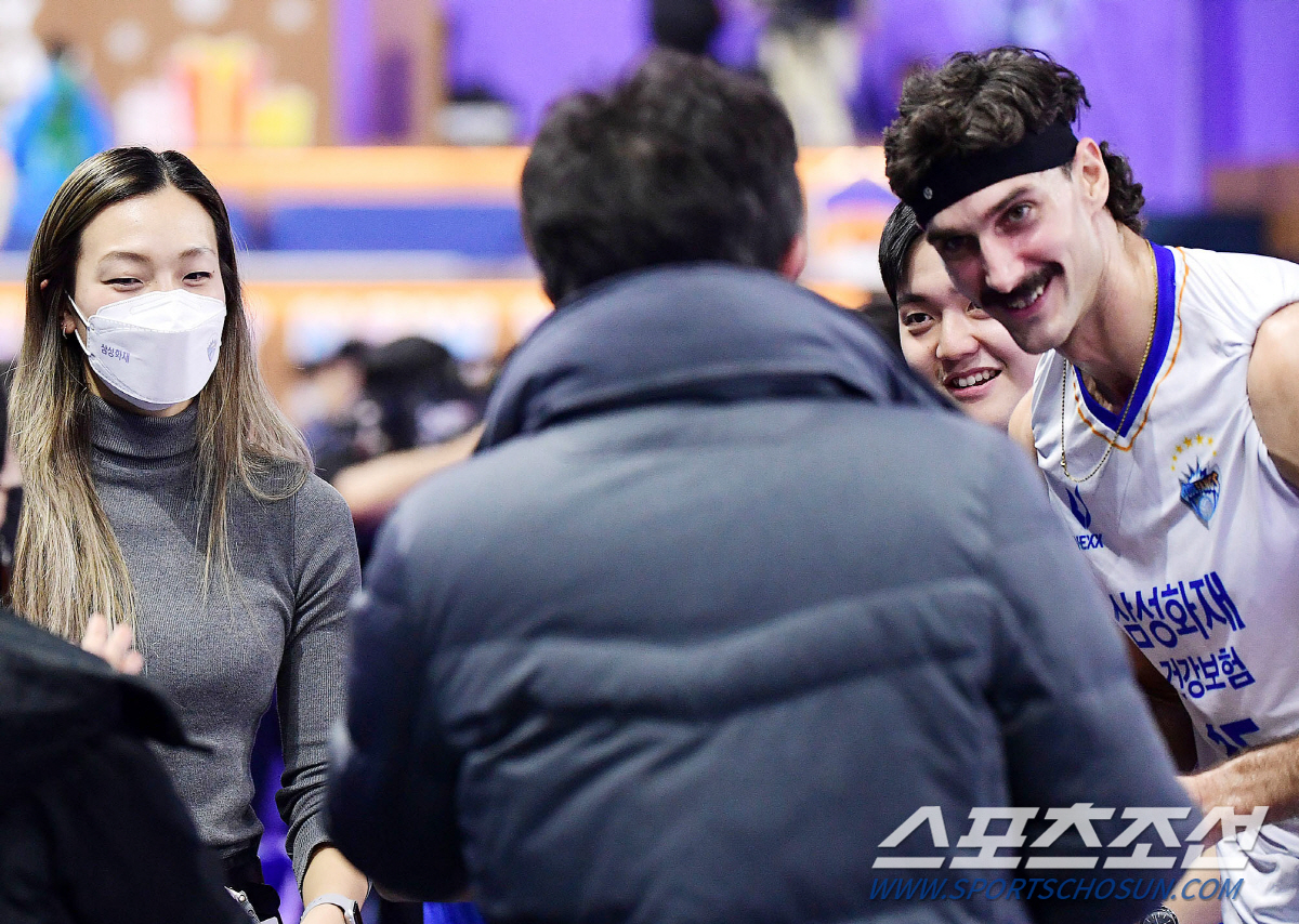경기 후 아내 이유하 씨가 아버지를 모시고 코트로 내려왔다. 장인어른을 향해 고개를 숙여 인사하는 러셀의 표정은 뿌듯함 그 자체였다. 모처럼 경기장을 찾은 장인어른 앞에서 러셀이 사위 노릇 제대로 했다.