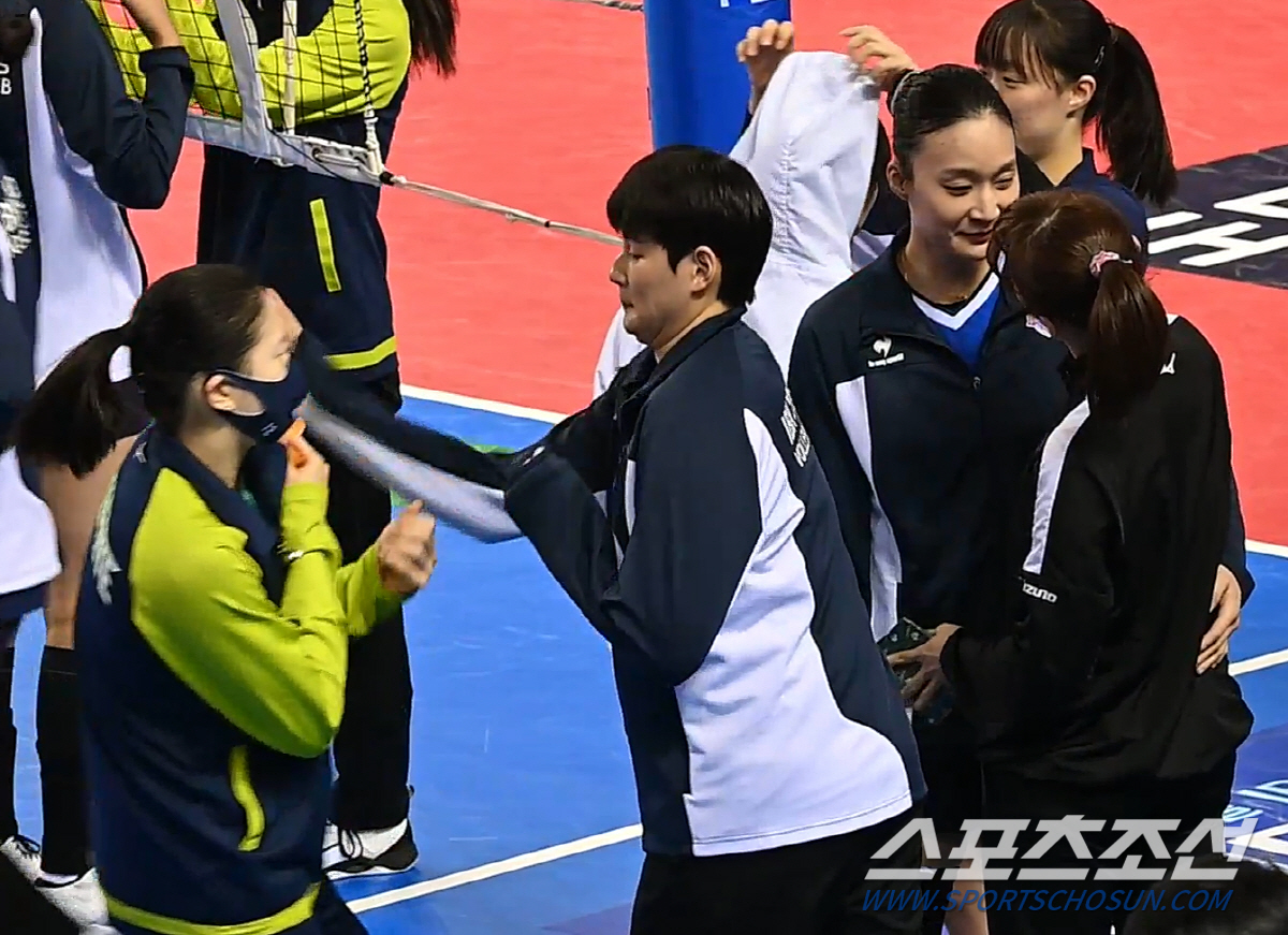 이다현의 스킨십에 장난기가 발동한 김희진은 이다현을 향해 등짝 스매싱을 날리며 반가운 마음을 표현했다.