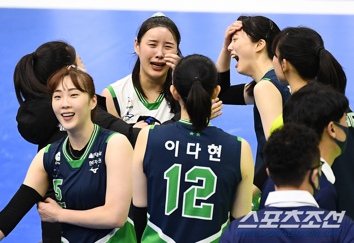 [수원=스포츠조선 박재만 기자] 주전 리베로 김연견의 부상 공백을 메우기 위해 최선을 다해 뛴 김주하는 경기 종료 후 동료들 품에 안겨 뜨거운 눈물을 흘렸다.