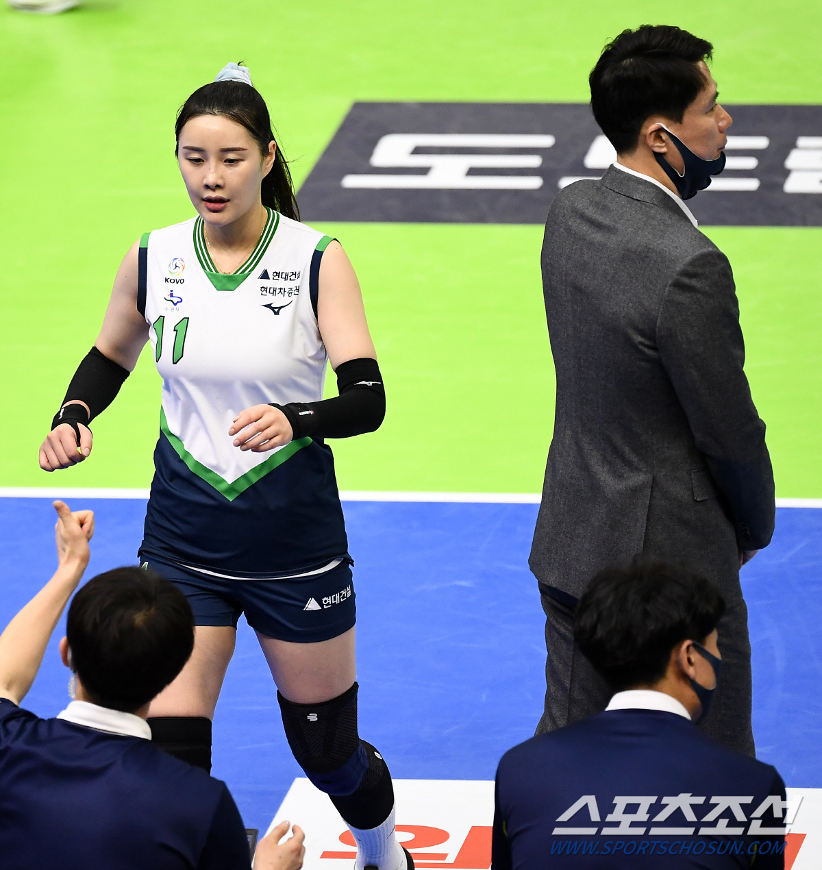 한편 이날 경기를 앞두고 현대건설은 악재를 맞았다. 주전 리베로 김연견이 목 부상으로 경기에 나서지 못하게 됐기 때문이다. 중요한 경기를 앞두고 강성형 감독은 고심 끝에 김연견의 자리에 김주하를 선발 출장시켰다. 결과는 대성공이었다. 리베로로 오랜만에 출전한 김주하는 수비와 리시브에서 안정적인 플레이로 제 역할을 해주며 부상으로 빠진 김연견의 빈자리를 완벽하게 메웠다.