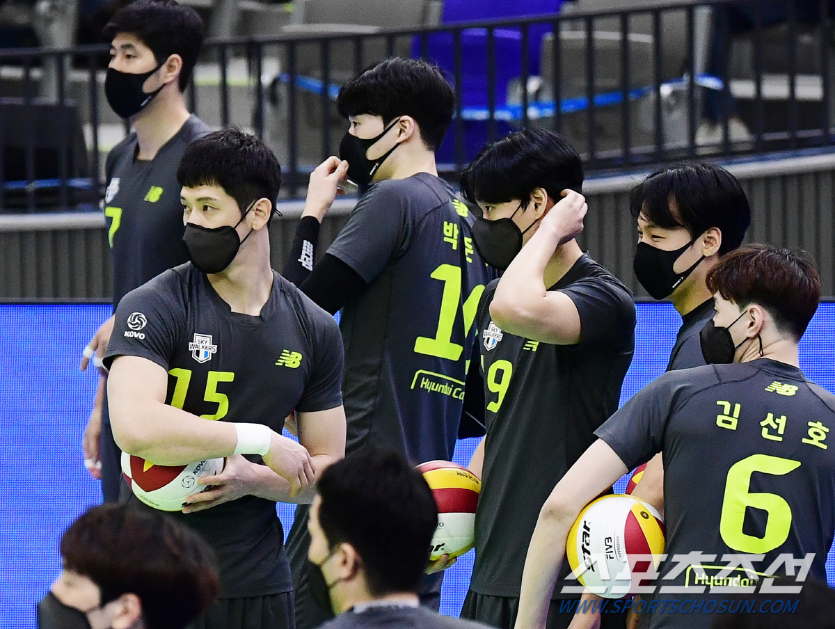 코트에 돌아온 남자부 선수들은 리그 파행 최악의 상황을 면하기 위해 노력하는 모습을 보여줬다. 경기력보다 서로의 안전을 위해 마스크를 철저하게 착용했다.