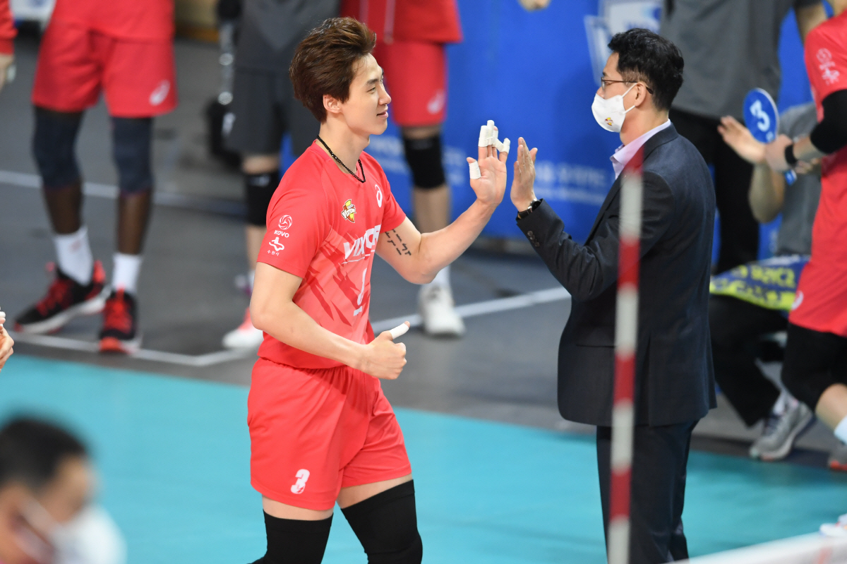 "1세트 잡았을 때 승리를 예감했다. 6전 전승이었던 우리카드가 훨씬 불안할 테니까. 3세트 중반 넘어가면서 이겼다는 생각이 들었다. 체력 회복이 가장 중요하다. 가족들을 만나 오늘의 기쁨을 만끽한 뒤 체력회복에 집중할 수 있도록 하겠다."