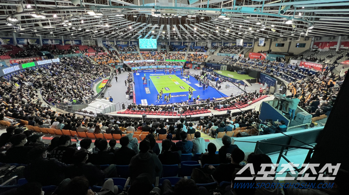 이날 경기는 인기스타인 양효진(현대건설)과 김연경(흥국생명)의 맞대결로 평일임에도 매진에 가까운 3652명(총 좌석수 3779석)이 체육관을 찾았다.