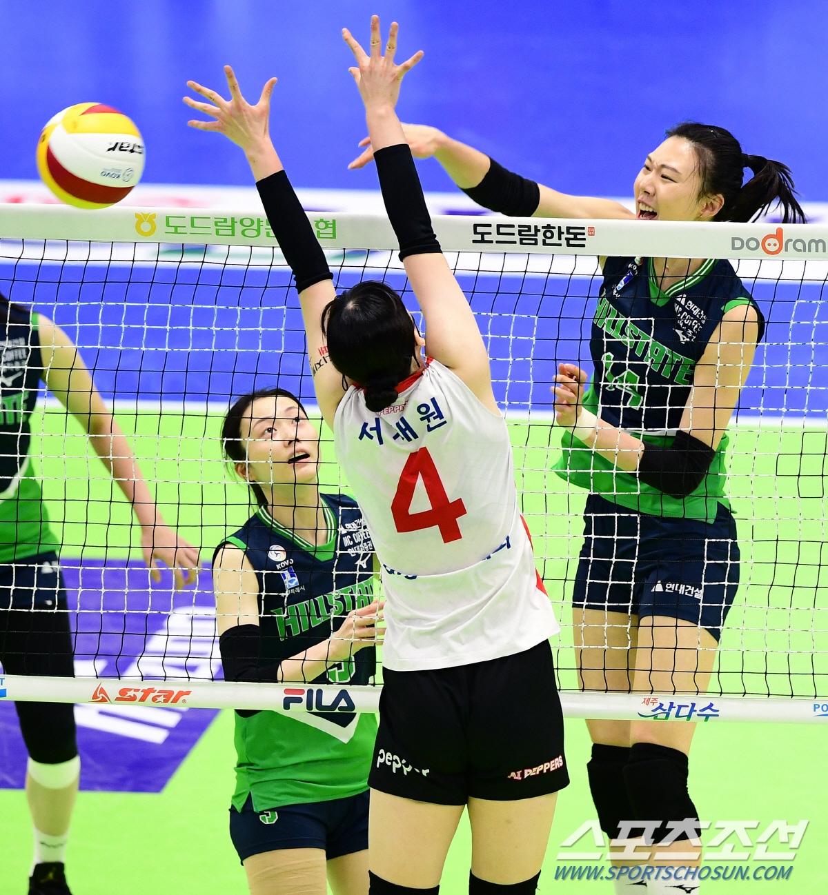 외국인 선수 없이 코트에 나선 현대건설. 그러나 공백을 느낄 새가 없었다. 1세트 한때 21-9까지 앞서갈 정도로 경기를 지배했다. 베테랑 황연주 양효진이 좌우 가리지 않고 코트를 폭격했다. 페퍼저축은행은 좀처럼 리시브가 살아나지 않으면서 허무하게 1세트를 내줬다. 2세트에선 심기일전한 페퍼저축은행의 반격이 이어졌지만, 현대건설의 높이와 수비를 뚫는데 애를 먹었다. 3세트 들어 페퍼저축은행이 몸놀림까지 무거워지며 자멸하는 사이, 현대건설은 손쉽게 점수를 쌓아가면서 승리를 가져왔다.