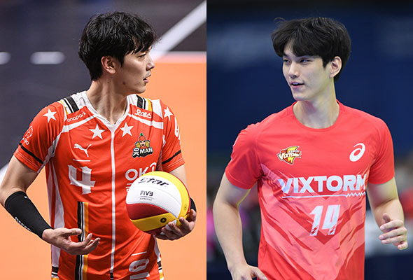 OK금융그룹 조재성(왼쪽)과 한국전력 임성진. 사진제공=KOVO