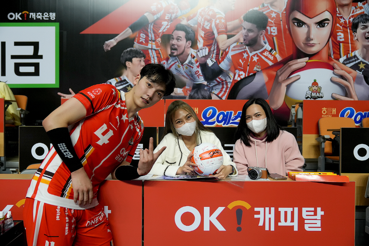 이 여성들은 V리그 경기를 보기 위해 태국에서 날아왔다고 자신들을 소개했다. '응원하는 선수가 있나'라는 물음에 "조재성(OK금융그룹)과 임성진(한국전력)의 열렬한 팬이다. 얼마 전 임성진이 뛰는 경기를 봤고, 오늘은 조재성을 보러 왔다"고 답했다. 지난 8월 태국에서 열린 아시아배구연맹컵(AVC컵)에서 태극마크를 달고 출전한 두 선수의 플레이를 보고 한눈에 반했다고 미소 지었다.