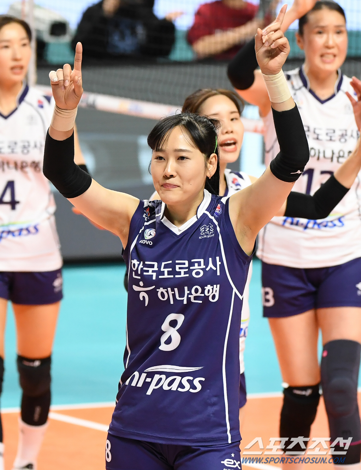 세트스코어 3대0으로 승리한 도로공사 선수들이 환호하고 있다. 장충체=정재근 기자 cjg@sportschosun.com/2022.11.26/