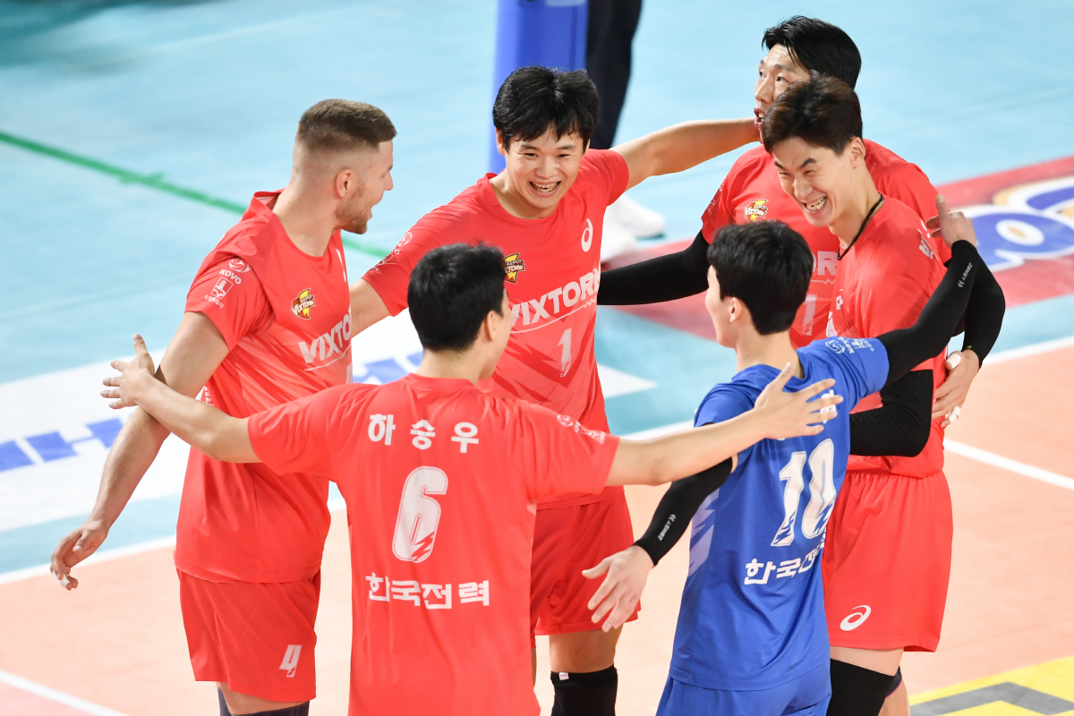 한국전력 타이스 덜 호스트가 38득점으로 상대편 코트를 폭격했고, 박철우가 13득점, 신영석이 11득점으로 힘을 보탰다.