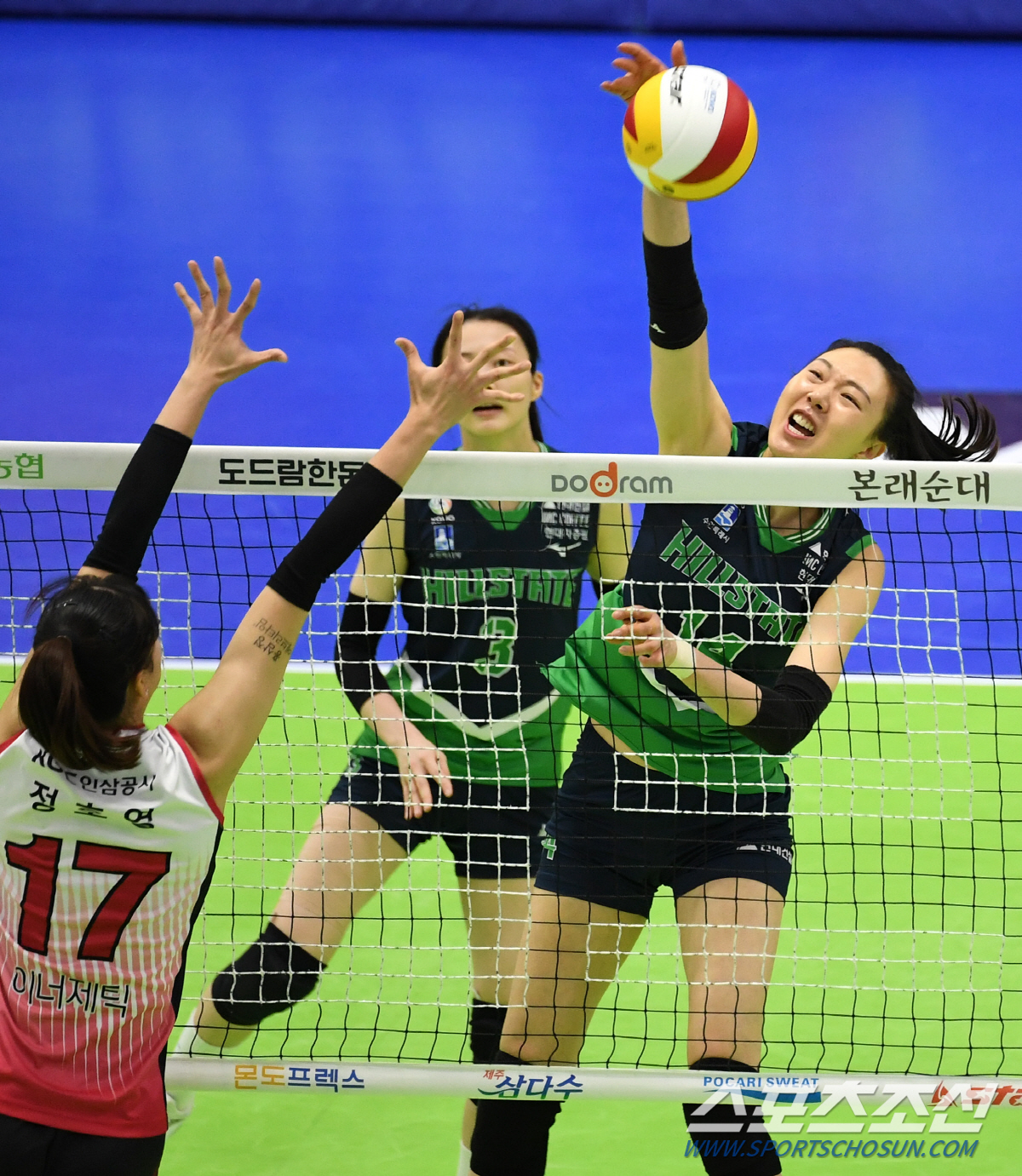 현대건설은 첫 세트를 가져오고도 2, 3세트를 잇달아 내주면서 벼랑 끝에 몰렸다. 평소 물흐르듯 이뤄지던 리시브, 세트 등에서 불안한 모습이 잇따라 나타났다. 강성형 감독은 "시즌을 치르다 보면 안 좋은 리듬이 찾아오는 데, 그 시기 아닌가 싶다"고 되돌아봤다.