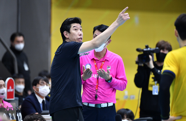 전날 4세트. KB손보가 9-11로 뒤진 상황에서 홍상혁의 스파이크 때 한국전력 박찬웅의 네트 터치가 있었다. '노 터치' 아웃 판정이 나오자 후인정 KB손보 감독은 비디오 판독을 요청했다.