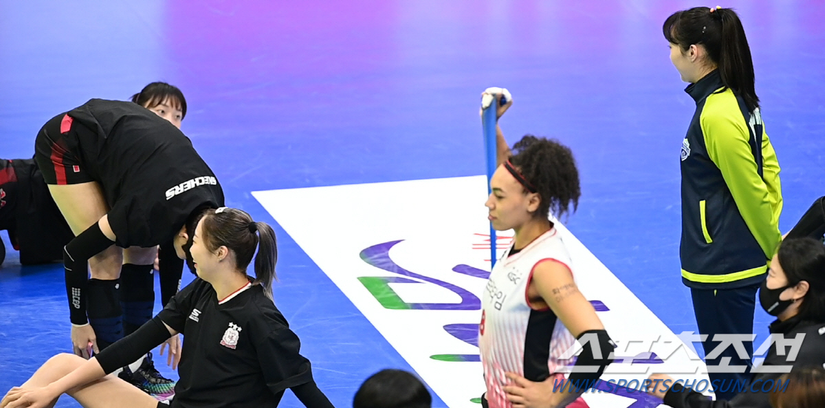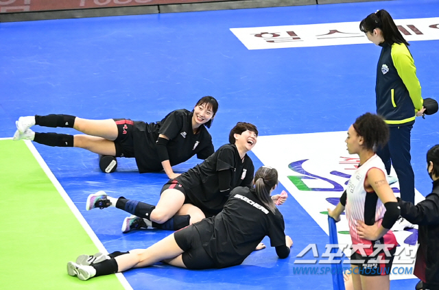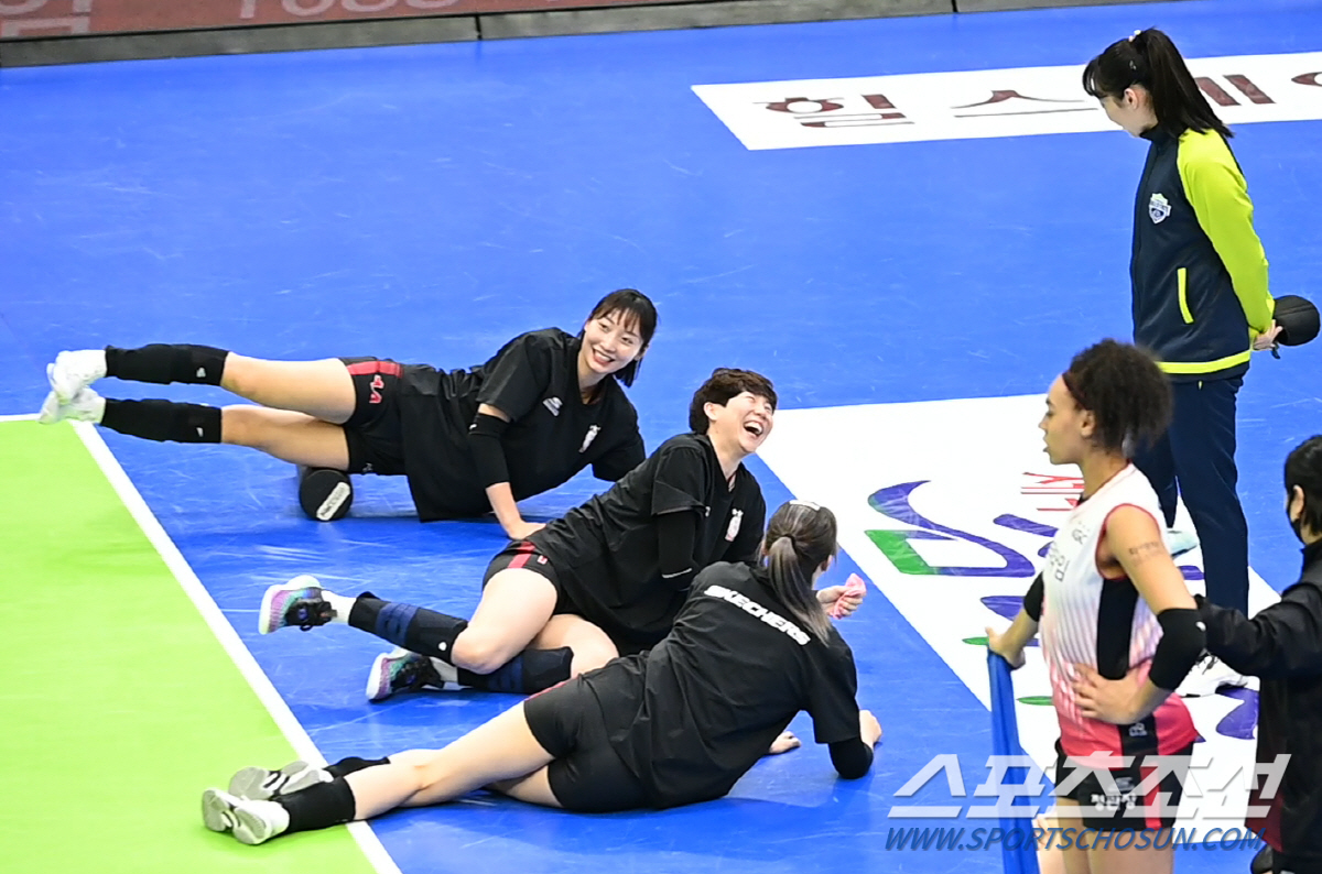 두 팀에는 친분이 깊은 선수들이 많다. 코트 한 쪽에서 튜빙으로 몸을 풀던 정호영이 코트에 들어서는 현대건설 선수들을 향해 손을 흔들어 인사를 건넸다.