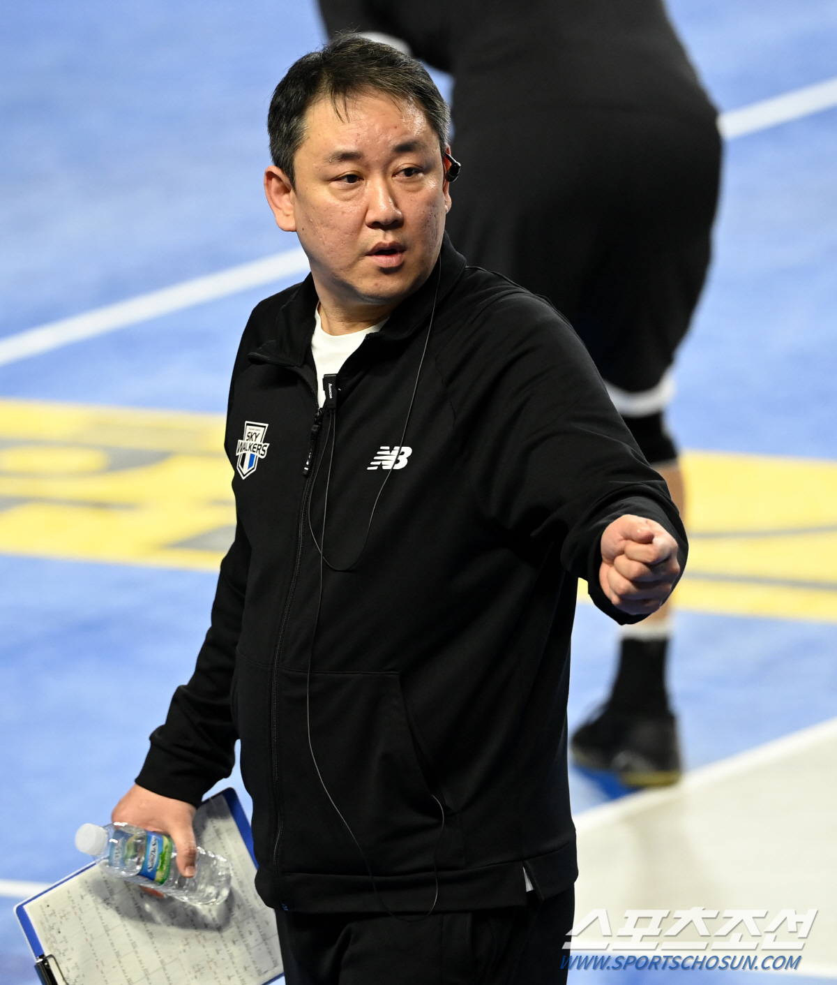 V리그 남자부 챔피언결정전 3차전 현대캐피탈과 대한항공의 경기가 3일 천안유관순체육관에서 열렸다. 현대캐피탈 최태웅 감독이 작전지시를 하고 있다. 천안=허상욱 기자wook@sportschosun.com/2023.04.03/