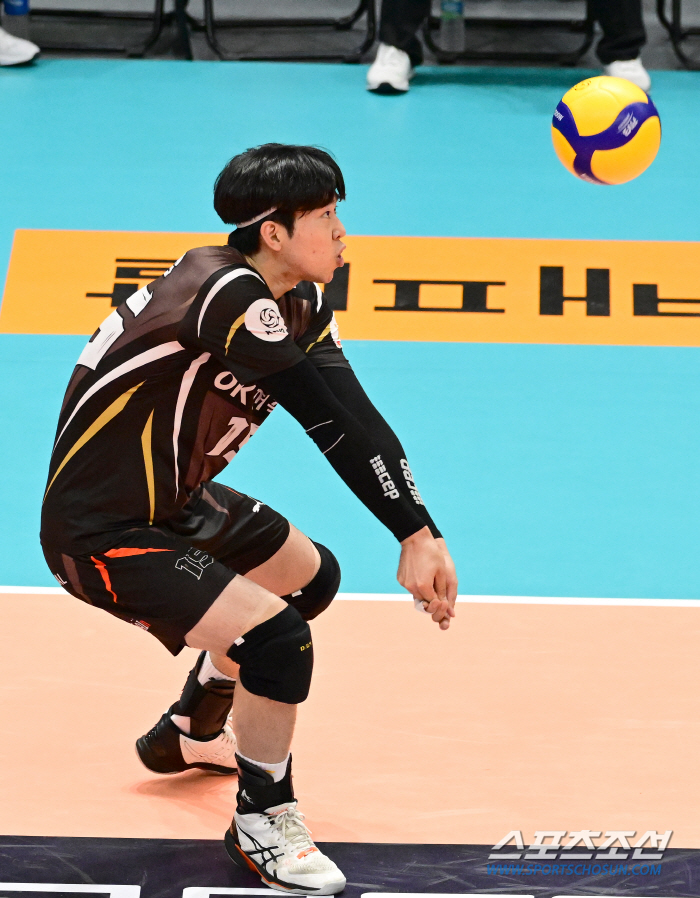 OK금융그룹 차지환이 리시브하고 있다. 사진제공=KOVO