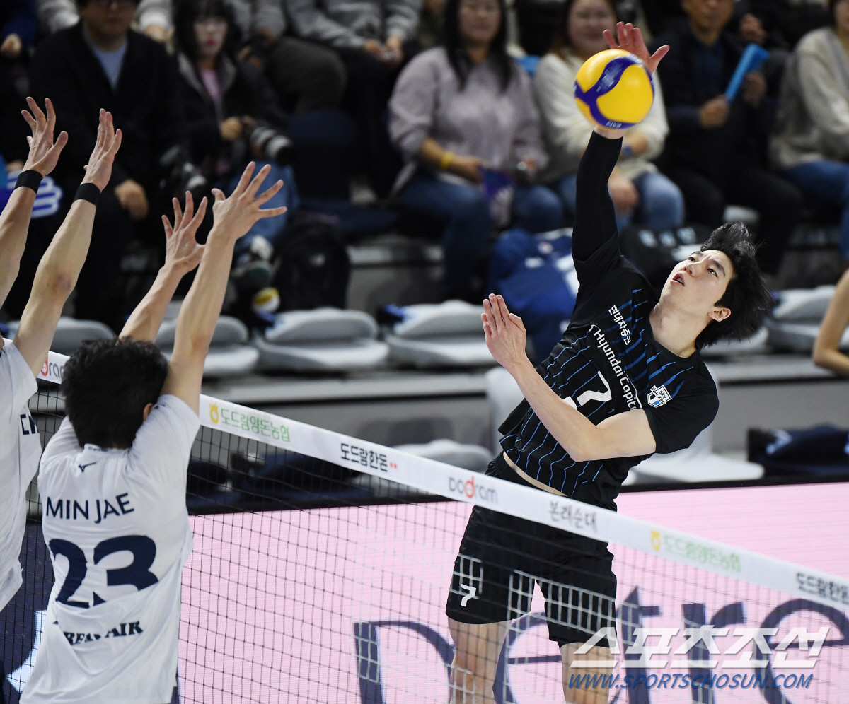 3일 인천 계양체육관에서 열린 대한항공과 현대캐피탈의 경기. 현대캐피탈 허수봉이 공격하고 있다. 인천=정재근 기자 cjg@sportschosun.com/2024.12.3/