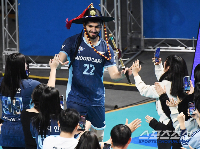 우리카드 아시아쿼터 알리(이란, 20세)가 선수 소개 때 포졸 모자를 쓰고 등장했다. 장난기 가득한 스물 살 청년의 모습에 팬과 동료 선수들이 박장대소하며 즐거워 했다.