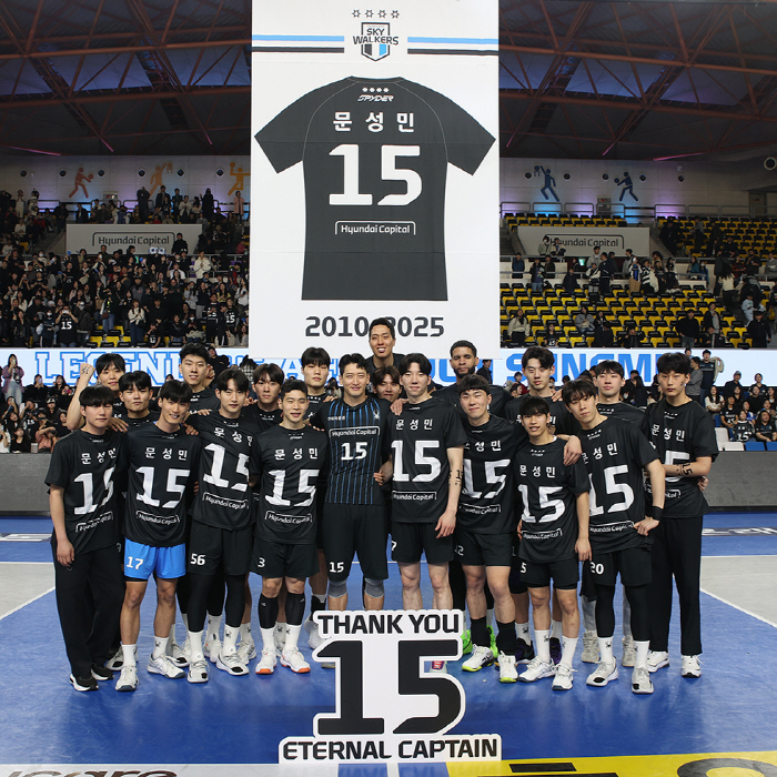 문성민은 20일 천안 유관순체육관에서 은퇴식 및 영구결번(15번) 행사를 가졌다. V리그에선 시몬(OK저축은행, 반납) 김사니(IBK기업은행) 이효희(한국도로공사) 이후 4번째 영구결번이다. 올시즌이 끝난 뒤엔 김연경(흥국생명)의 은퇴 및 영구결번도 예정돼있다.