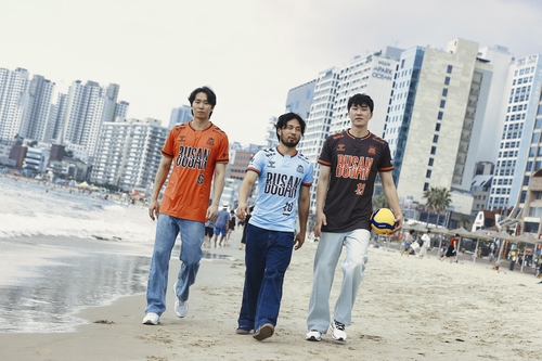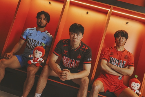 (서울=연합뉴스) 하남직 기자 = 2025-2026시즌 새 연고지 부산에서 홈 경기를 치르는 프로배구 남자부 OK저축은행이 '부산과의 동행' 의지를 담은 유니폼을 공개했다.