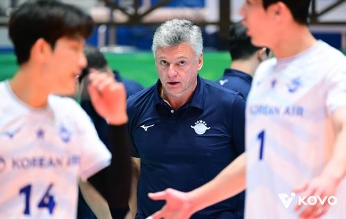 그는 "어제 한국전력과 연습경기를 했는데 0-3으로 졌다. (불가리아 국가대표팀에서 뛰었던) 외국인 선수 (디미타르) 디미트로프의 컨디션이 올라오지 않아서 걱정이다. 아시아 쿼터 (트렌트) 오데이 선수도 만족할 정도의 기량은 아니다"라고 말했다.