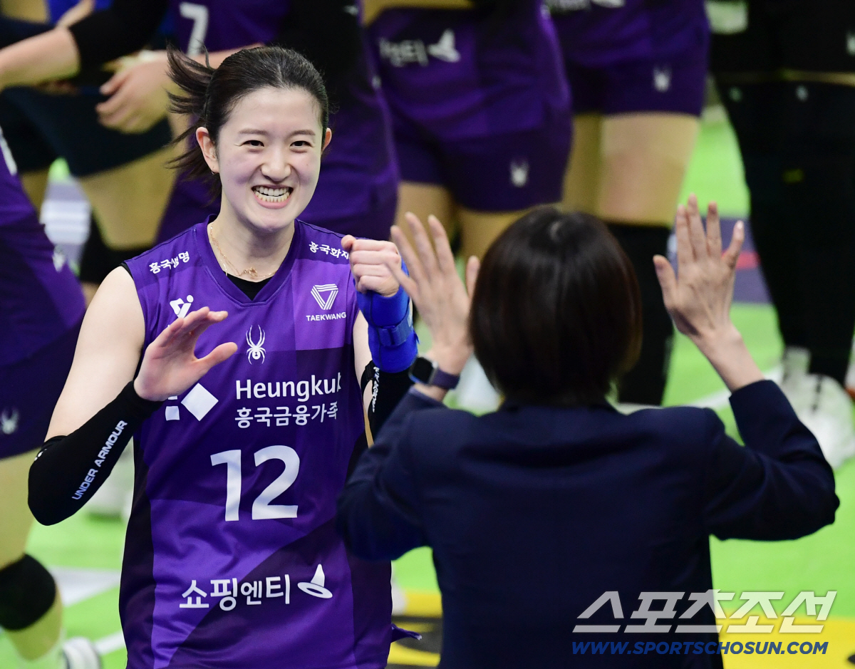 29일 수원체육관에서 열린 배구 V리그 여자부 흥국생명과 현대견설의 경기. 흥국생명이 현대건설에 세트스코어 3-0으로 승리했다. 경기 종료 후 요시하라 감독과 하이파이브를 나누고 있는 이다현. 수원=송정헌 기자songs@sportschosun.com