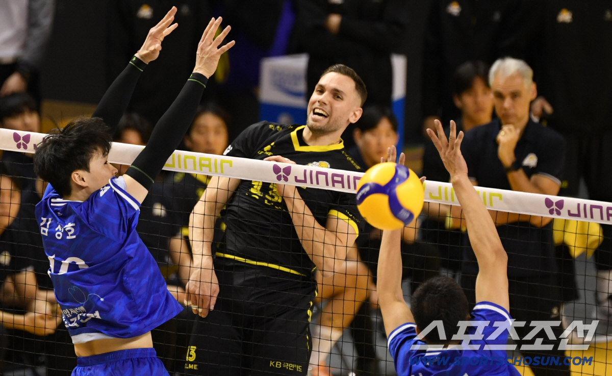 2일 의정부 경민대학교 체육관에서 열린 V리그 남자부 KB손해보험과 한국전력의 경기. KB손해보험 비예나가 상대 블로킹을 피해 공격을 시도하고 있다. 의정부=박재만 기자 pjm@sportschosun.com