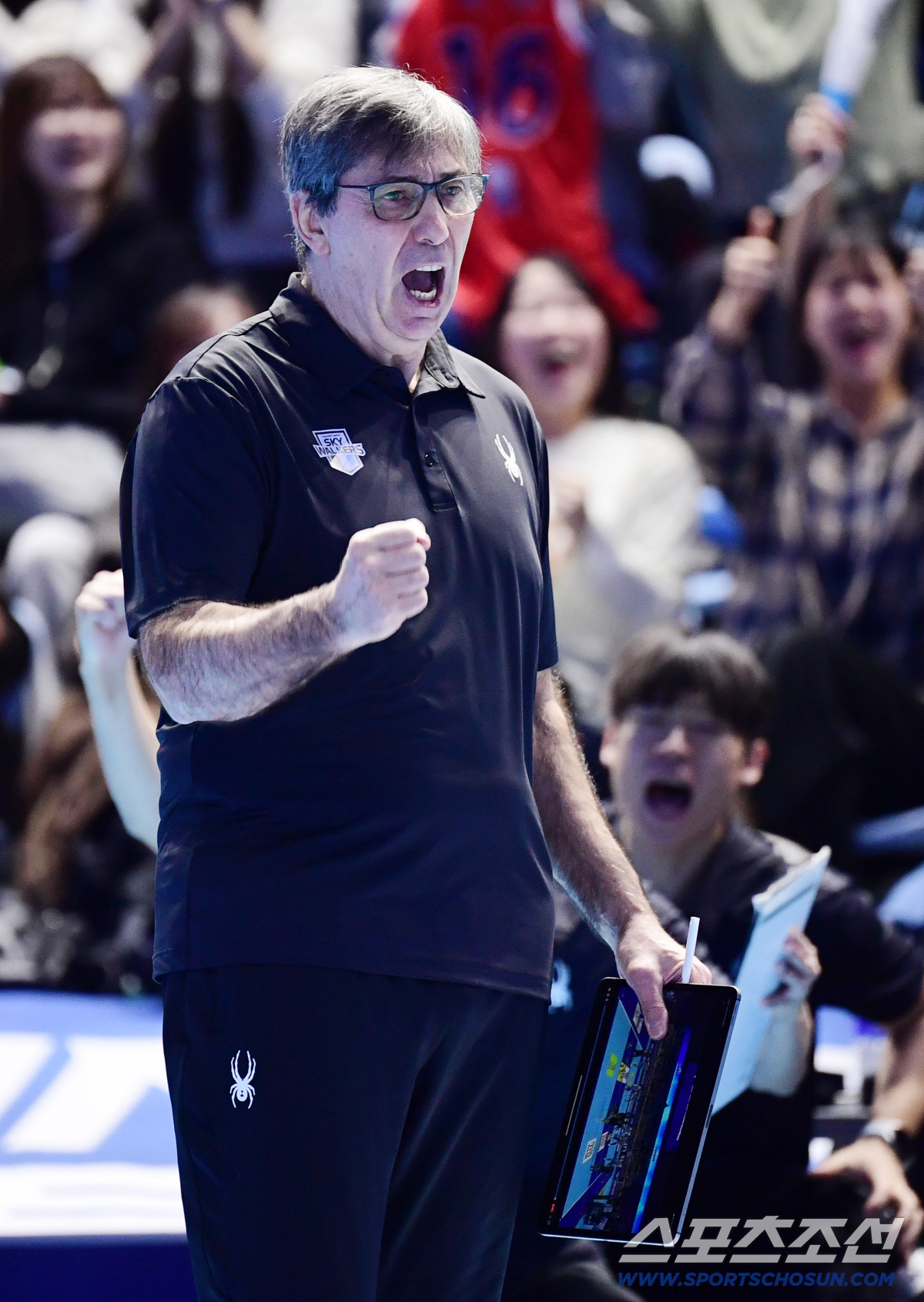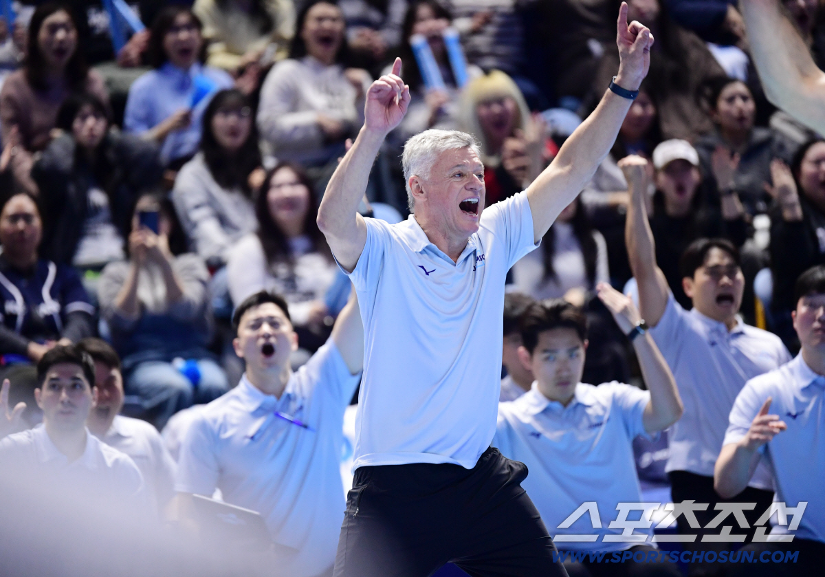 1위팀 대한항공 헤난 달 조토 감독은 리그 1위를 달리고 있으나 경계를 늦추지 않았다. 선수들의 득점이 나올 때마다 함께 환호하며 선수들에게 힘을 불어넣었다. 브라질 출신답게 열정이 넘쳤다. 연장 접전 짜릿한 득점에 주먹을 쥐어보이며 환호하는 모습은 팬들을 즐겁게 했다.