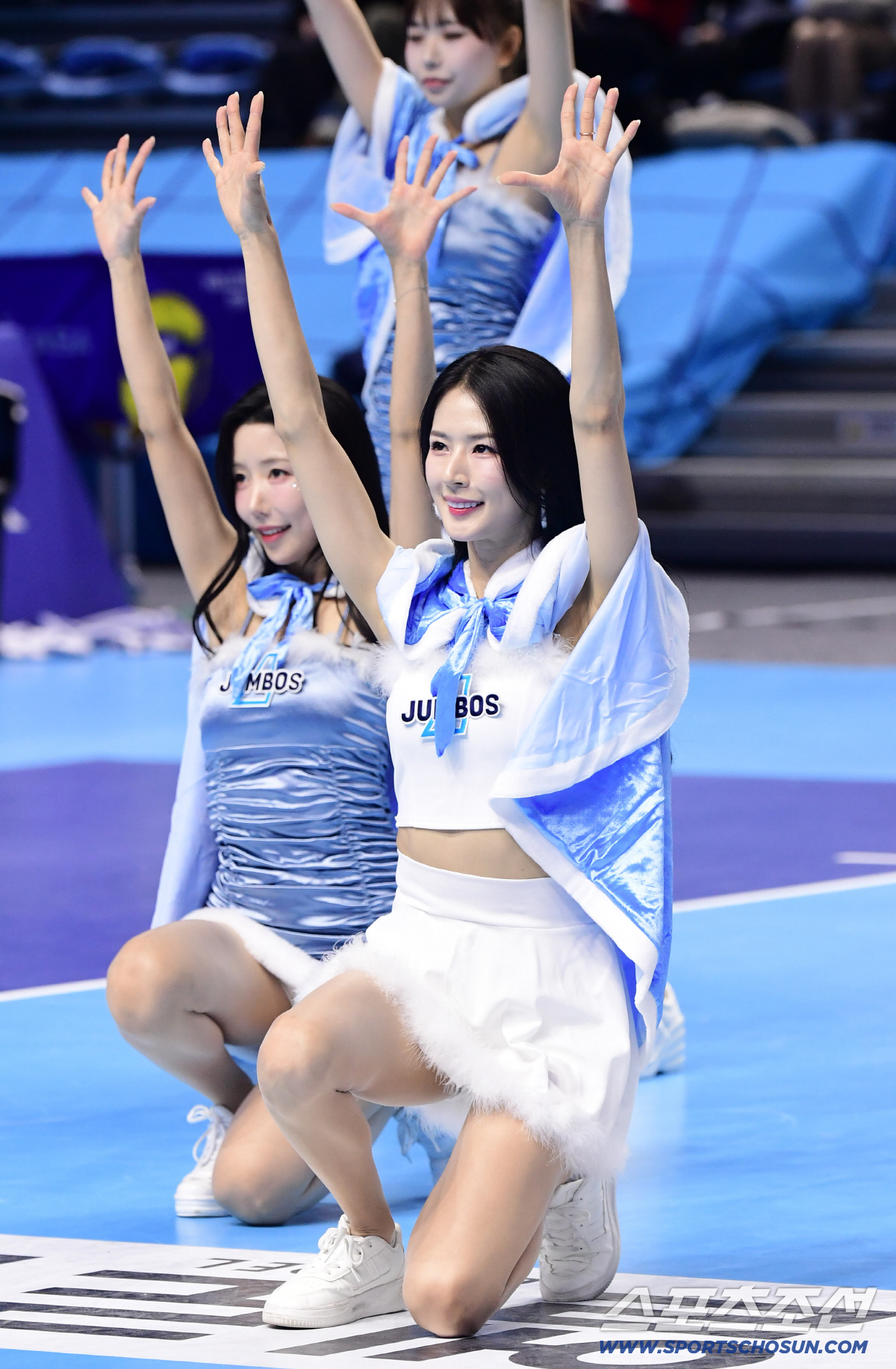 19일 인천 계양체육관에서 열린 V리그 남자부 대한항공과 한국전력의 경기. 대한항공 치어리더들이 크리스마스 특별공연을 펼치고 있다. 인천=송정헌 기자songs@sportschosun.com