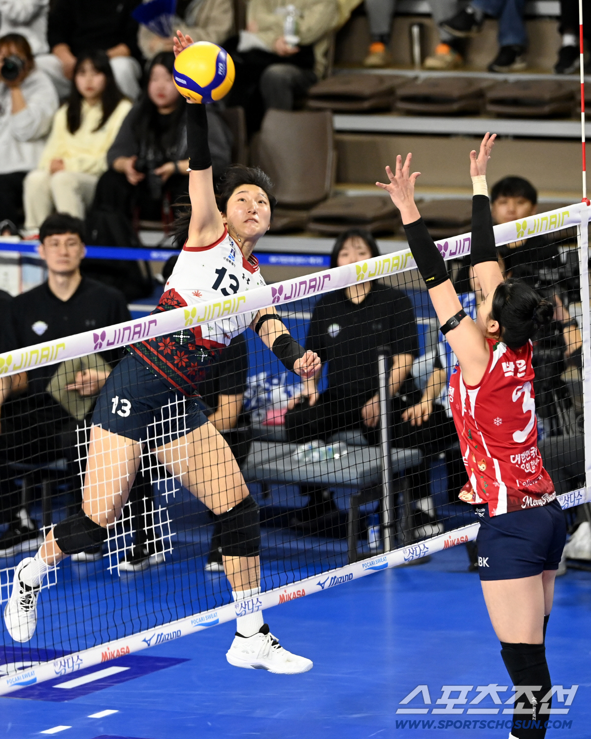 21일 화성종합실내체육관에서 열린 V리그 여자부 IBK기업은행과 현대건설의 경기, 현대건설 정지윤이 공격을 시도하고 있다. 화성=허상욱 기자wook@sportschosun.com/2025.12.21/