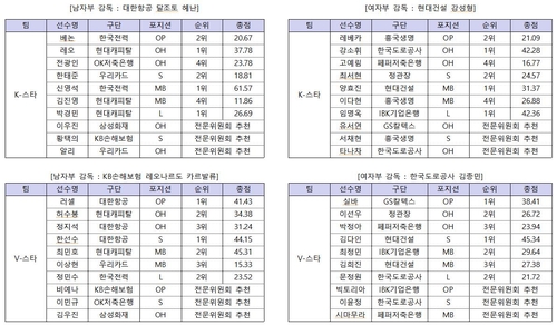 이 밖에도 레오나르도 레이바 마르티네스(등록명 레오·현대캐피탈), 전광인(OK저축은행) 등 베테랑과 한태준(우리카드), 정한용(대한항공) 등 젊은 피들이 올스타 명단에 이름을 올렸다.