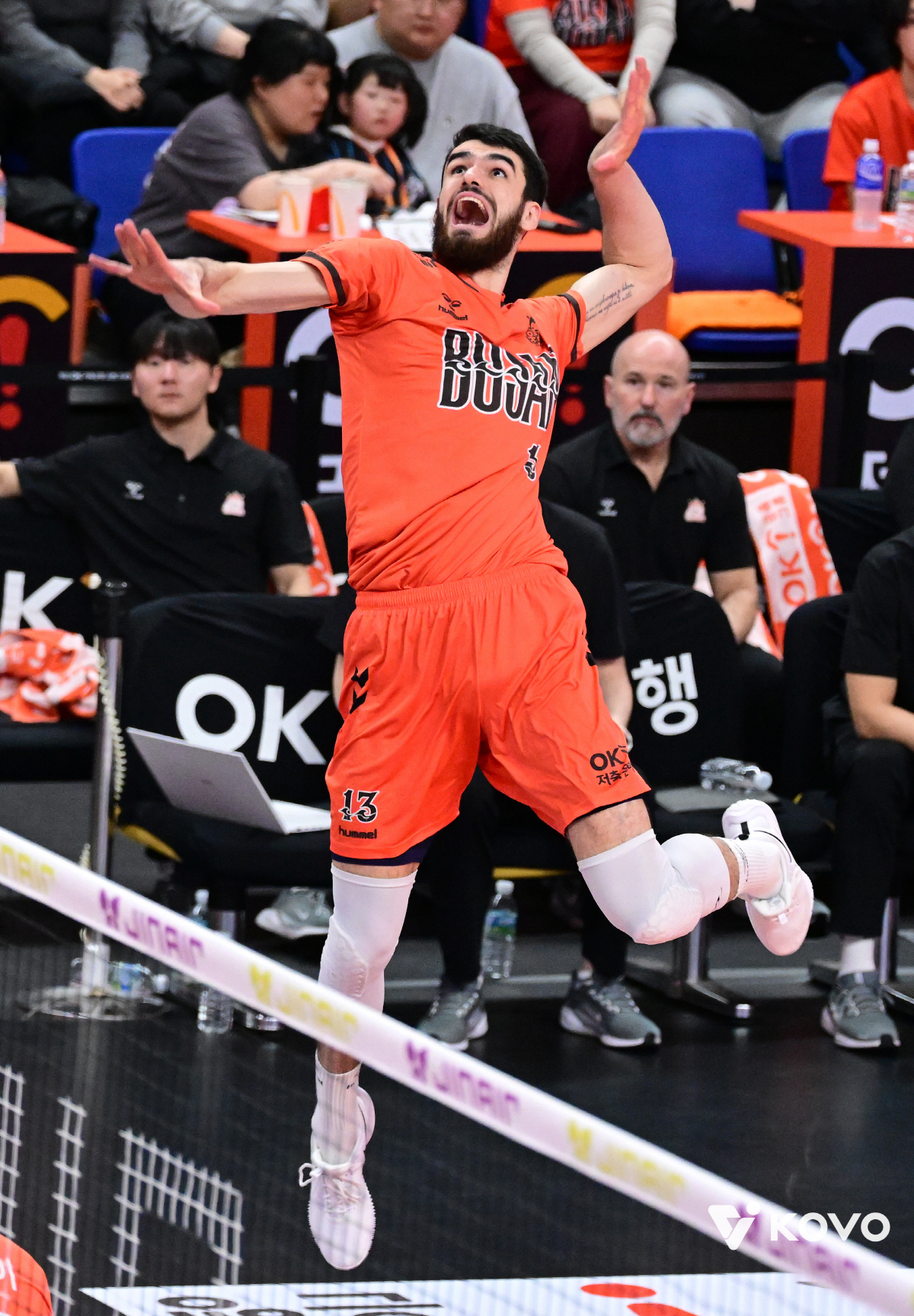 [부산=스포츠조선 한동훈 기자] 남자프로배구 OK저축은행이 외국인선수 디미트로프의 대활약을 앞세워 대승을 거뒀다.