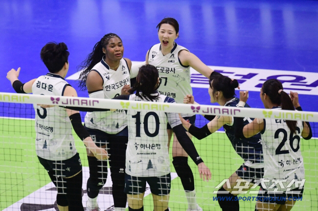 18일 수원체육관에서 열린 V리그 여자부 현대건설과 한국도로공사의 경기.득점 후 기쁨을 나누고 있는 도로공사 선수들. 수원=송정헌 기자songs@sportschosun.com/2025.12.18/