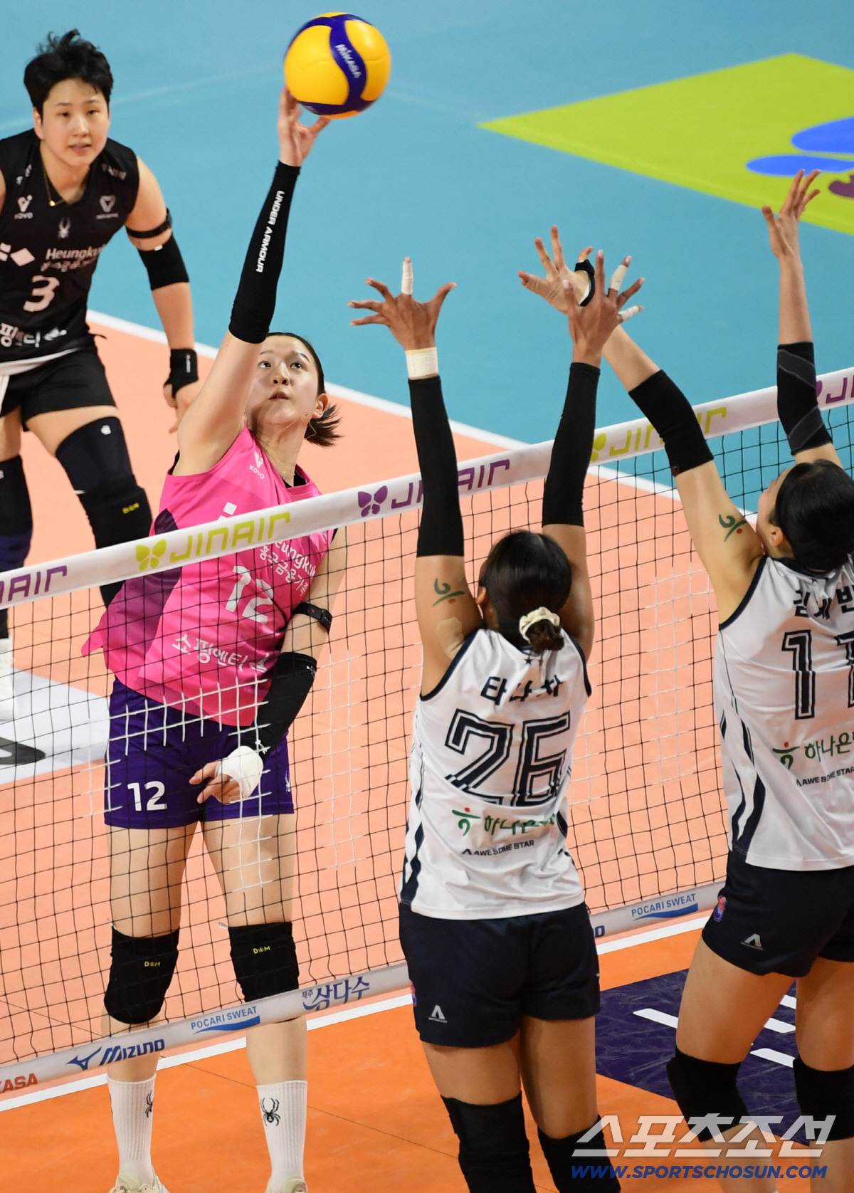 14일 인천 삼산월드체육관 열린 V리그 흥국생명과 한국도로공사 경기. 흥국생명 레베카가 블로킹을 피해 공격을 시도하고 있다. 인천=박재만 기자 pjm@sportschosun.com/2026.01.14/