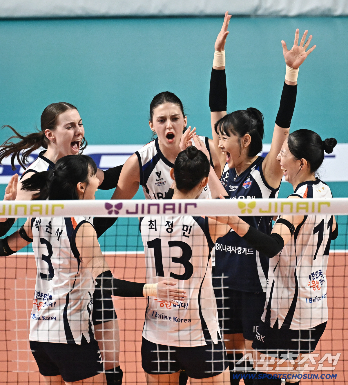 15일 서울 장충체육관에서 열린 배구 V리그 여자부 GS칼텍스와 IBK기업은행의 경기. 득점 후 기쁨을 나누는 IBK기업은행 선수들. 장충동=송정헌 기자songs@sportschosun.com