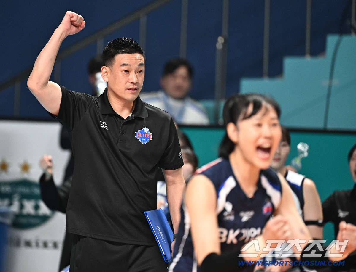 15일 서울 장충체육관에서 열린 배구 V리그 여자부 GS칼텍스와 IBK기업은행의 경기. 득점에 주먹을 쥐어보이는 IBK기업은행 여오현 감독대행. 장충동=송정헌 기자songs@sportschosun.com