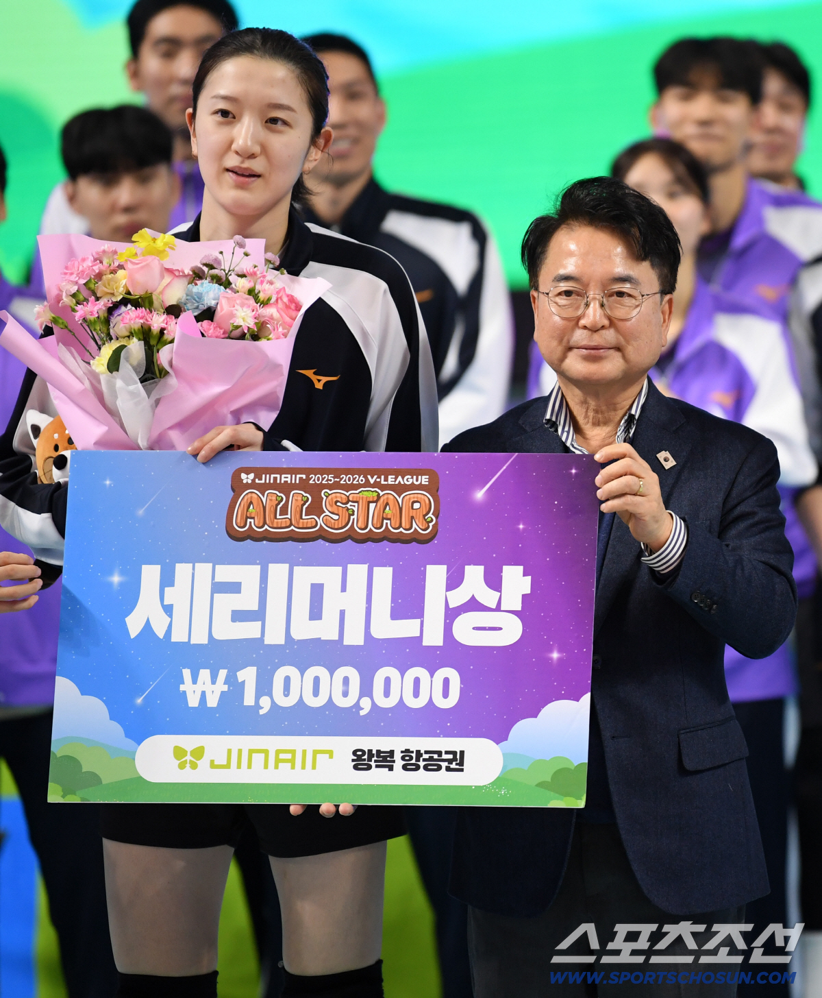 2025-2026 V리그 올스타전이 25일 춘천시 호반체육관에서 열렸다. 세리머니상을 수상한 이다현, 육동한 춘천시장이 기념촬영을 하고 있다. 춘천=박재만 기자 pjm@sportschosun.com