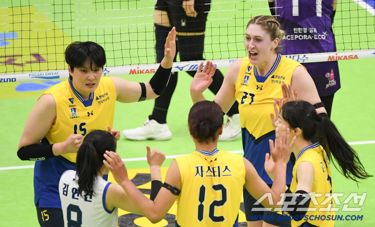 현대건설은 9일 수원실내체육관에서 열린 진에어 2025~2026 V-리그 흥국생명 핑크스파이더스와 여자부 5라운드 경기에서 세트스코어 3대1(21-25, 25-14, 25-20, 25-20)로 승리했다. 현대건설은 16승11패 승점 48점을 기록하며 흥국생명(15승13패 승점 48점)을 밀어내고 2위로 올라섰다.