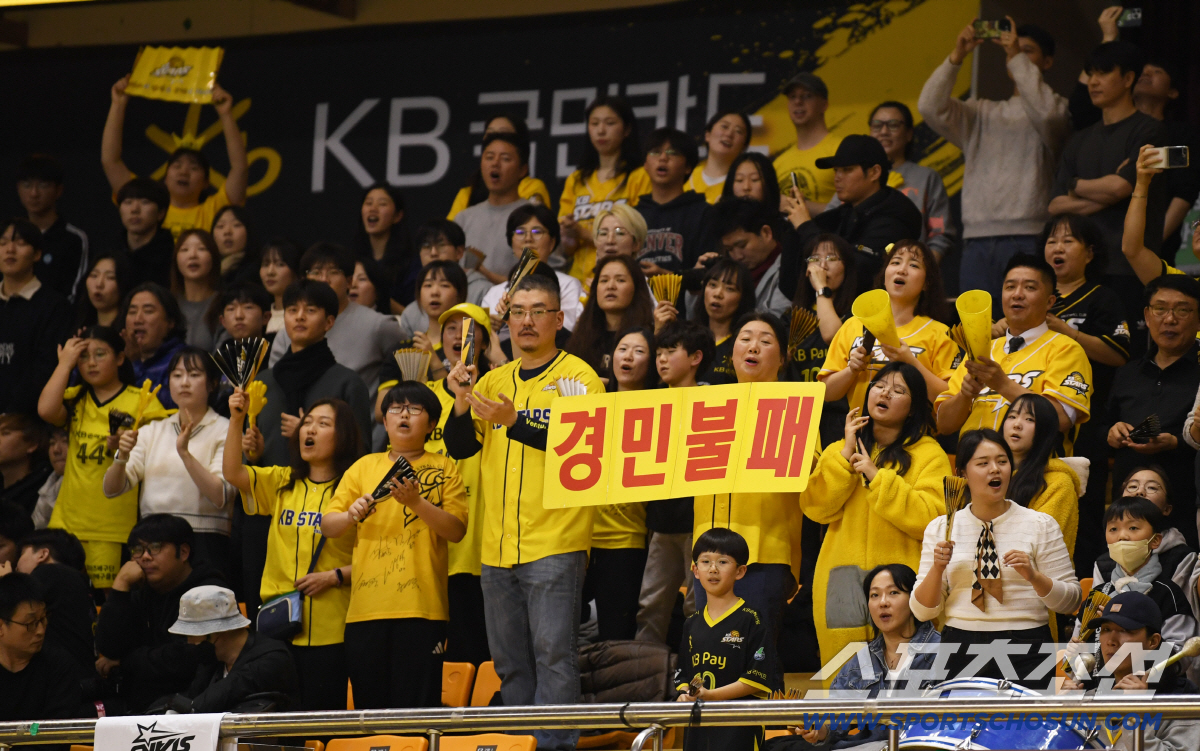 18일 의정부 경민대학교 체육관에서 열린 V리그 남자부 KB손해보험과 삼성화재의 경기. KB손해보험 홈 팬들이 열띤 응원전을 펼치고 있다. 의정부=박재만 기자 pjm@sportschosun.com
