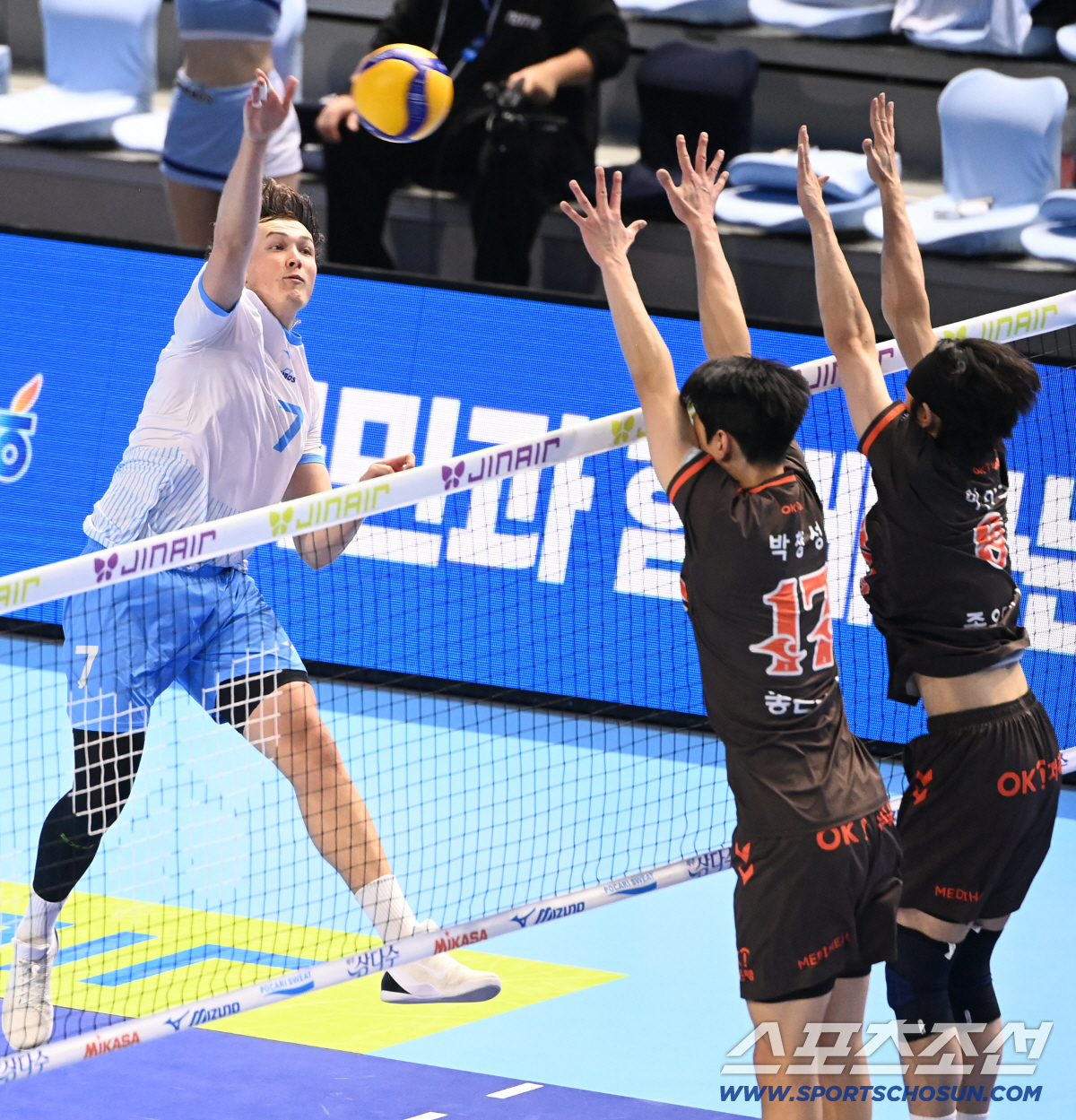 8일 인천계양체육관에서 열린 V리그 남자부 대한항공과 OK저축은행의 경기, 대한항공 이든이 공격을 시도하고 있다. 인천=허상욱 기자wook@sportschosun.com/2026.02.18/