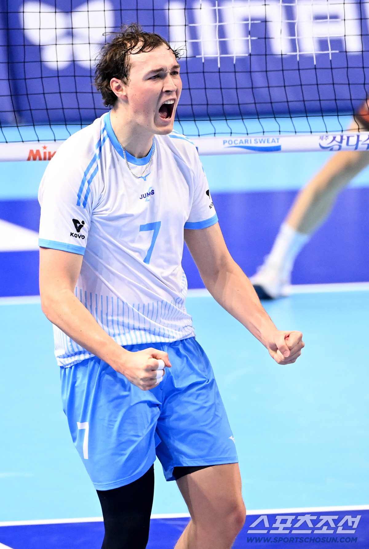 에이스 러셀이 20득점으로 팀 공격을 이끌었고, 이날만큼은 살림꾼으로 나선 정지석(13득점)도 뒤를 받쳤다.
