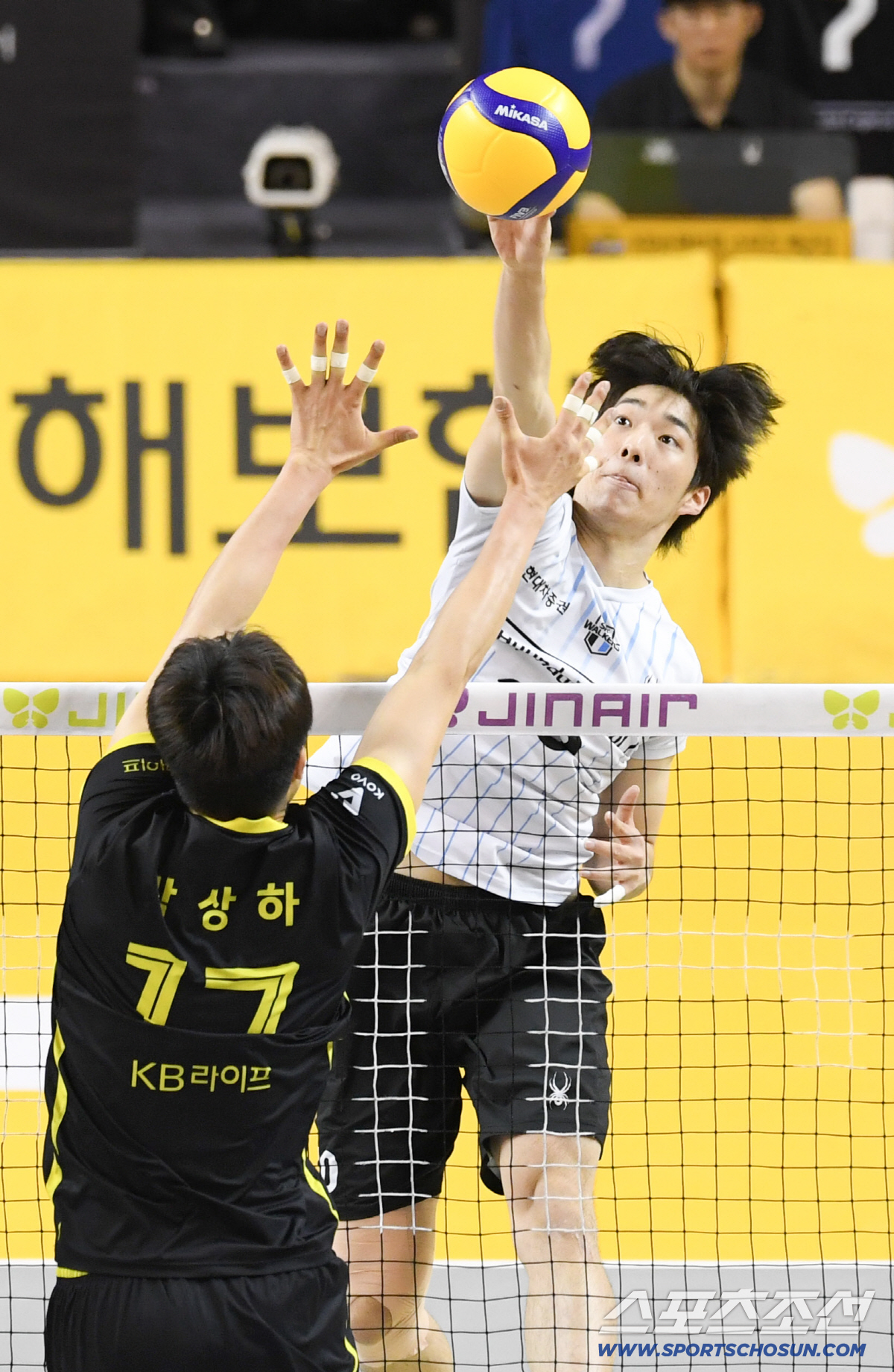 5일 의정부 경민대학교 체육관에서 열린 V리그 남자부 KB손해보험과 현대캐피탈의 경기. 현대캐피탈 김진영이 상대 블로킹을 피해 공격을 시도하고 있다. 의정부=박재만 기자 pjm@sportschosun.com