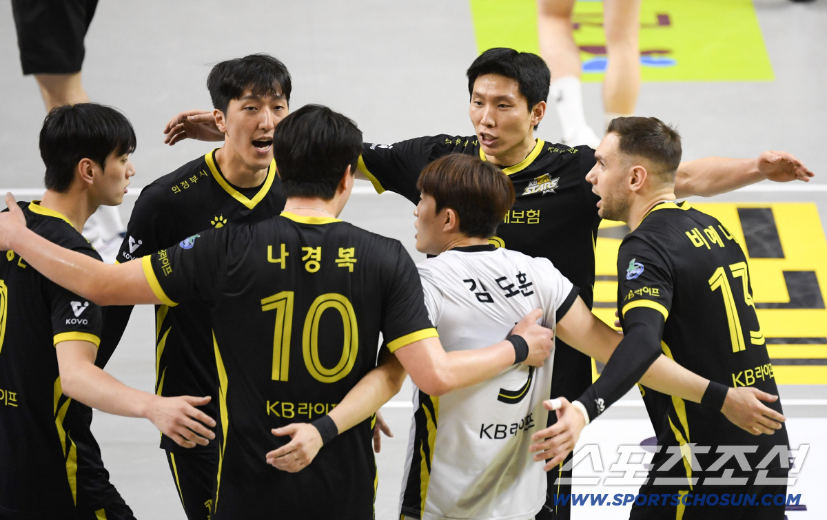 5일 의정부 경민대학교 체육관에서 열린 V리그 남자부 KB손해보험과 현대캐피탈의 경기. KB손해보험 비예나가 득점 후 환호하고 있다. 의정부=박재만 기자 pjm@sportschosun.com