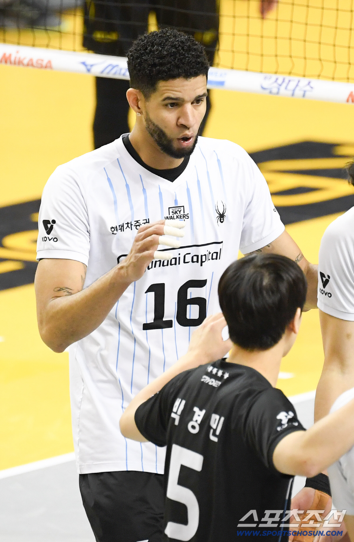 5일 의정부 경민대학교 체육관에서 열린 V리그 남자부 KB손해보험과 현대캐피탈의 경기. 현대캐피탈 레오가 득점 후 환호하고 있다. 의정부=박재만 기자 pjm@sportschosun.com