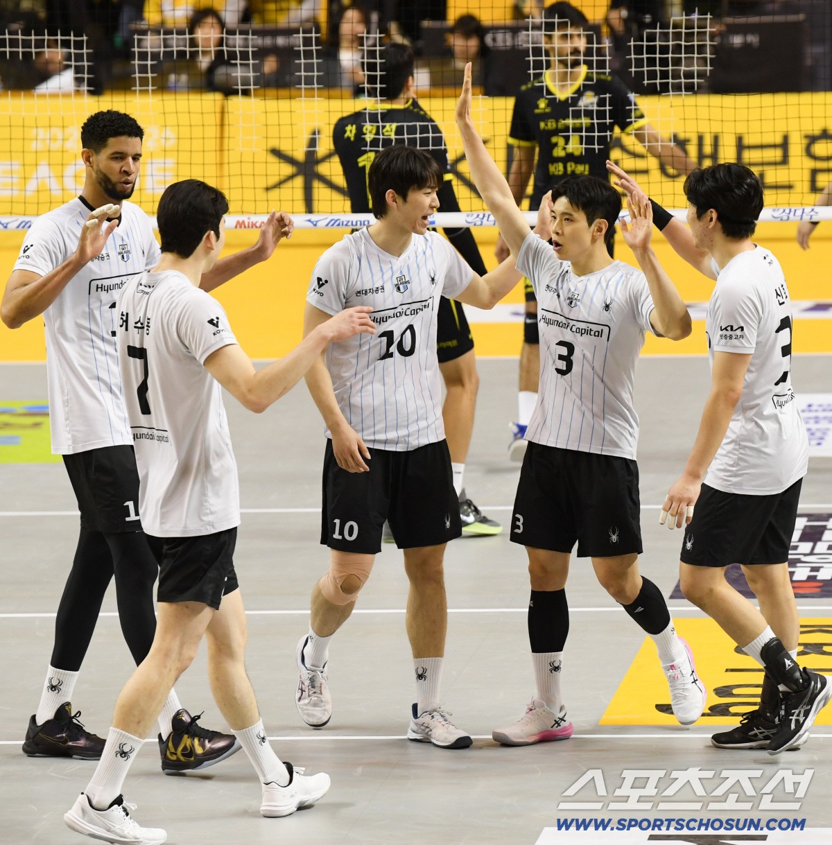 5일 의정부 경민대학교 체육관에서 열린 V리그 남자부 KB손해보험과 현대캐피탈의 경기. 승리한 현대캐피탈 선수들이 기뻐하고 있다. 의정부=박재만 기자 pjm@sportschosun.com