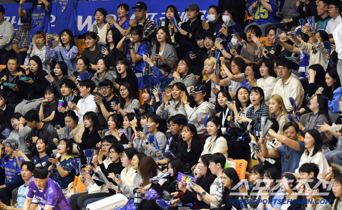 25일 의정부 경민대학교체육관에서 열린 V리그 남자부 준PO KB손해보험과 우리카드의 경기. 우리카드 원정 팬들이 응원전을 펼치고 있다. 의정부=박재만 기자 pjm@sportschosun.com