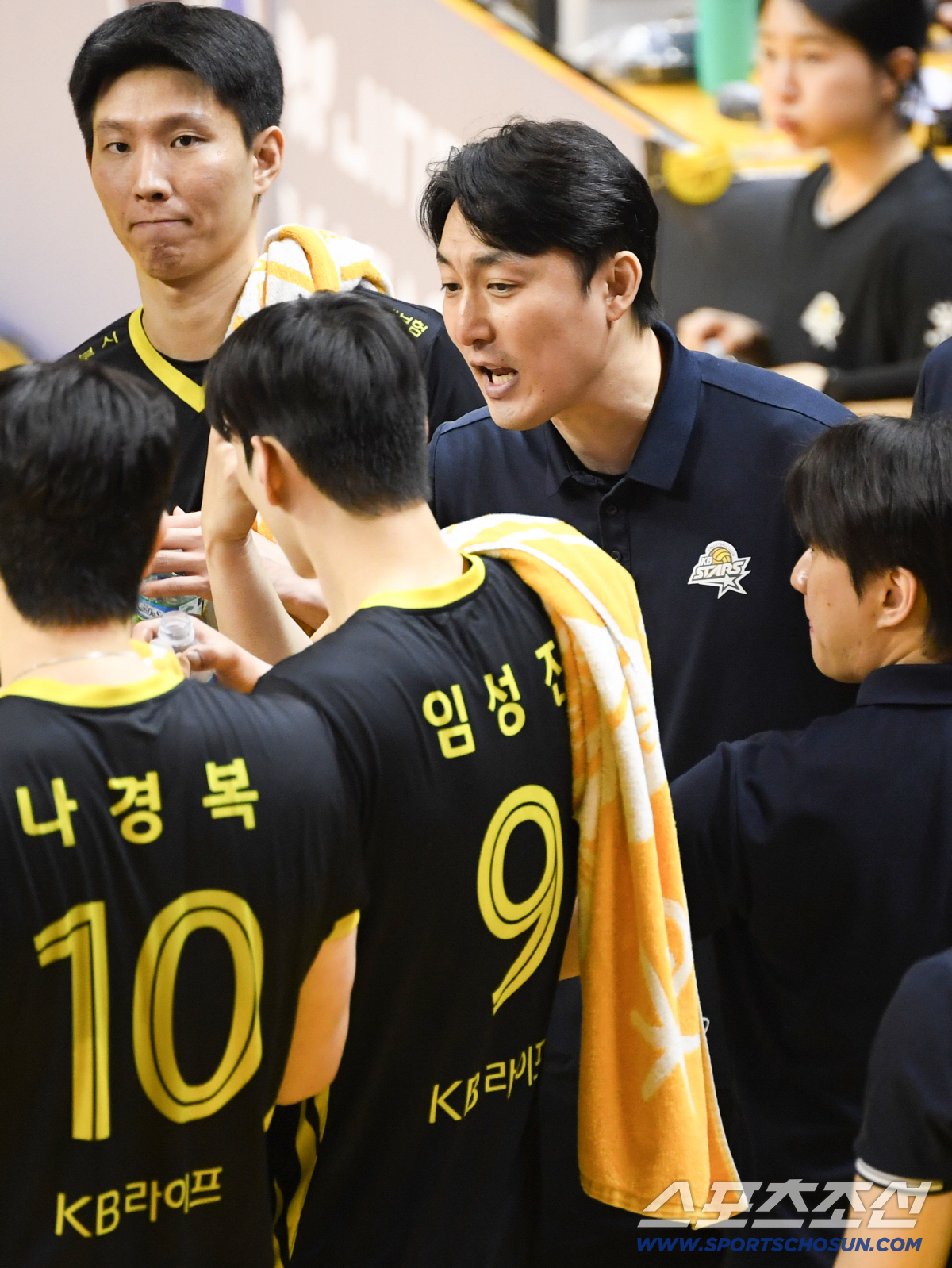 25일 의정부 경민대학교체육관에서 열린 V리그 남자부 준PO KB손해보험과 우리카드의 경기. KB손해보험 하현용 감독대행이 작전 지시를 하고 있다. 의정부=박재만 기자 pjm@sportschosun.com