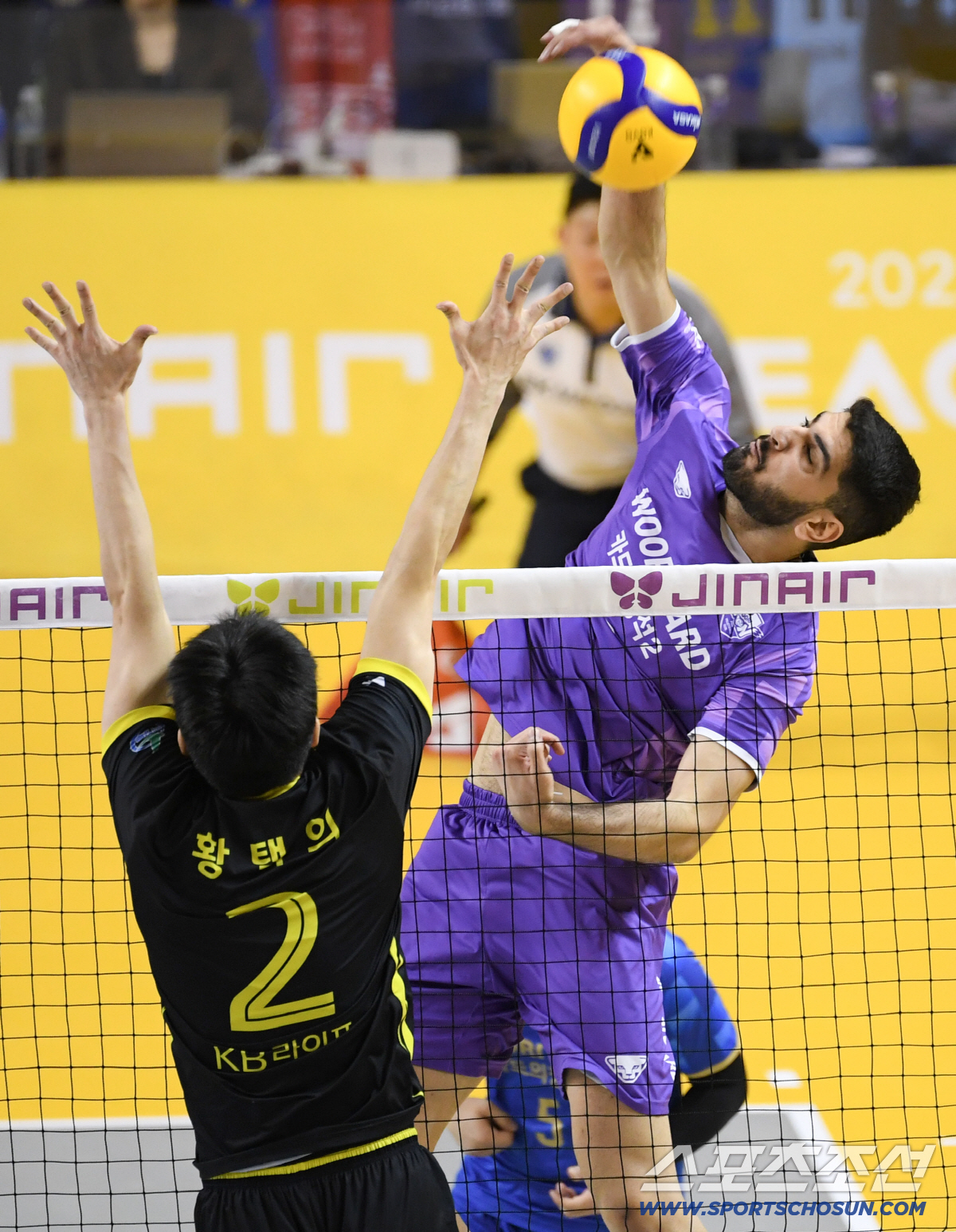 25일 의정부 경민대학교체육관에서 열린 V리그 남자부 준PO KB손해보험과 우리카드의 경기. 우리카드 알리가 상대 블로킹을 피해 공격을 시도하고 있다. 의정부=박재만 기자 pjm@sportschosun.com/2026.03.25/